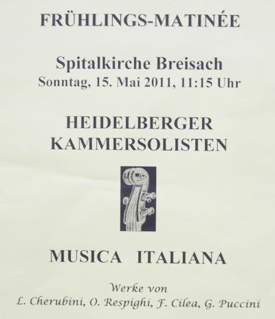 15. Mai 2011, 11.15 Uhr Spitalkirche Breisach Frühlings-Matinée |
